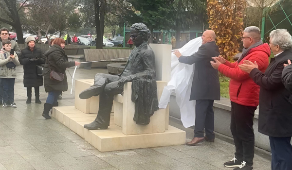 REȘIȚA – Cu același prilej a fost dezvelită în proximitatea Fântânii cinetice statuia creatorului ei, maestrul Constantin Lucaci!