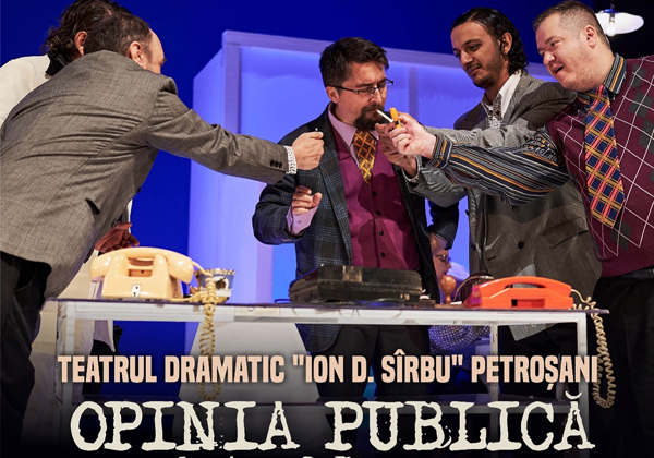 Piesa, una dintre cele mai jucate comedii ale dramaturgului, vorbește cu ironie fină despre lumea birourilor, despre șefi, protejați și decizii aparent importante, dar și despre micile jocuri de putere care fac parte din viața de zi cu zi. Deși scrisă în 1967, „Opinia publică“ rămâne incredibil de actuală, surprinzând cu haz și luciditate mecanismele sociale și slăbiciunile umane care nu se schimbă odată cu timpul. Spectacolul promite o seară în care râsul se împletește cu reflecția, într-o satiră socială cu parfum de epocă, adusă în prezent de trupa din Petroșani.